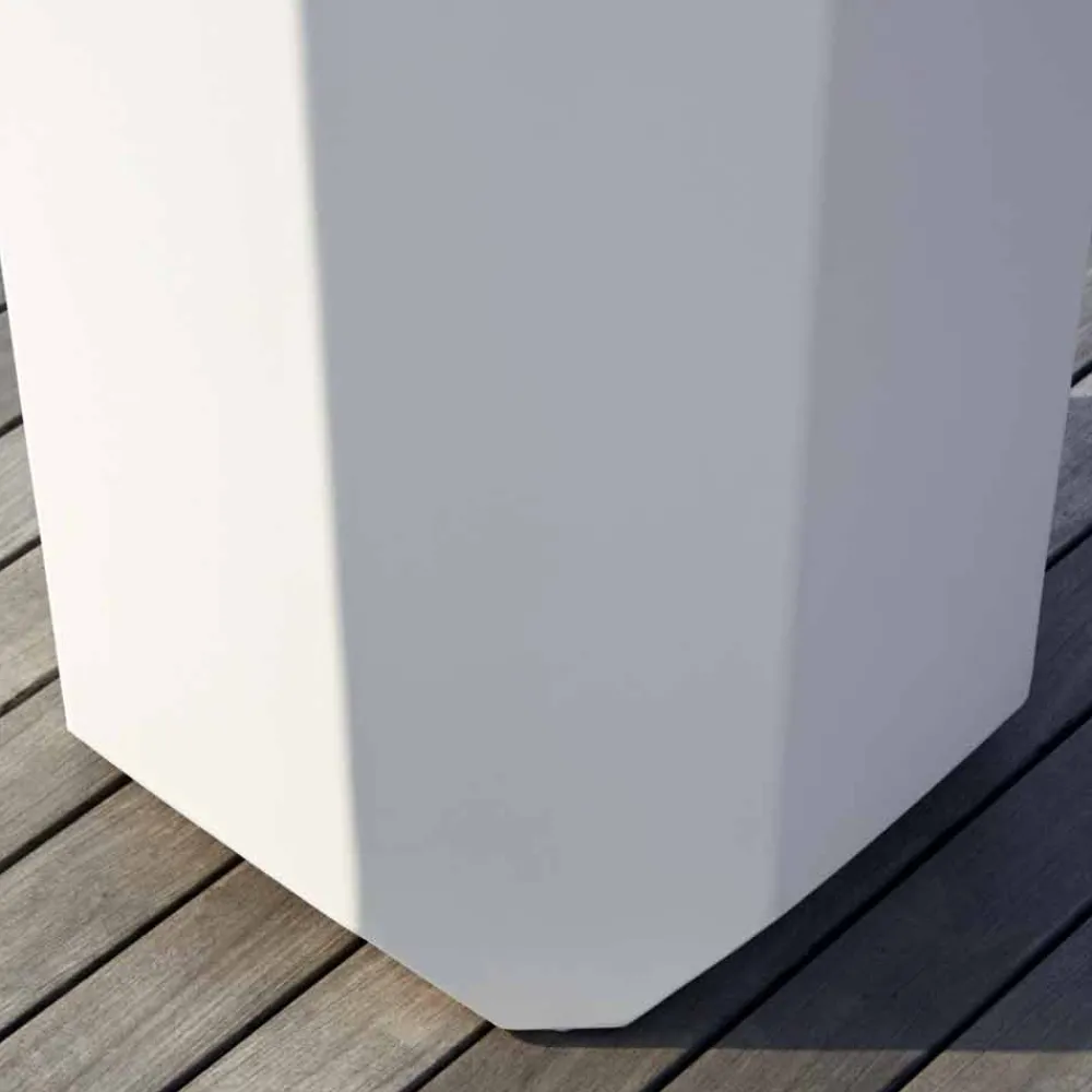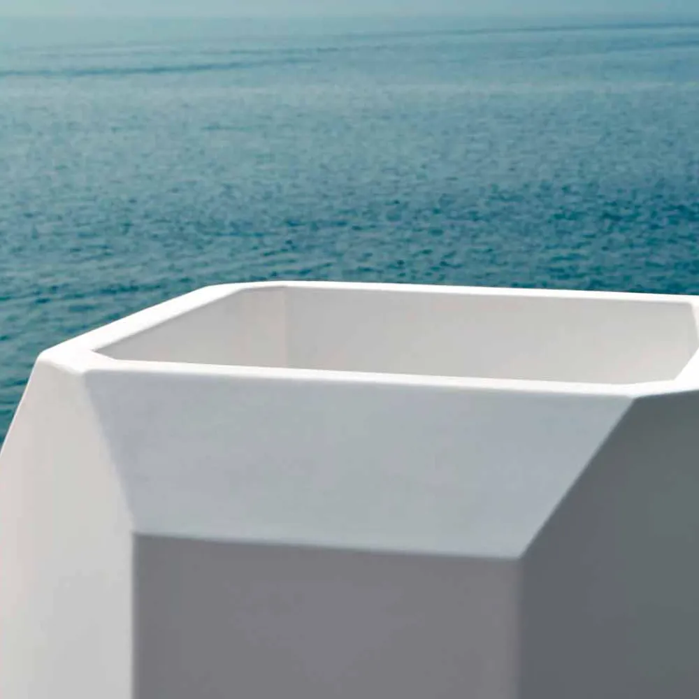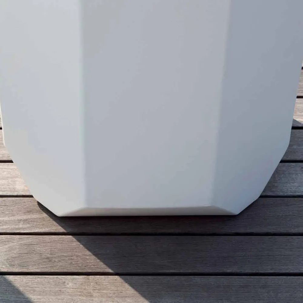 Inspiriert vom Schneiden von Edelsteinen hat es eine Poleasy-Struktur in einem weißen Finish, das gegen UV-Strahlen beständig ist und keine Oberflächenporosität aufweist.
