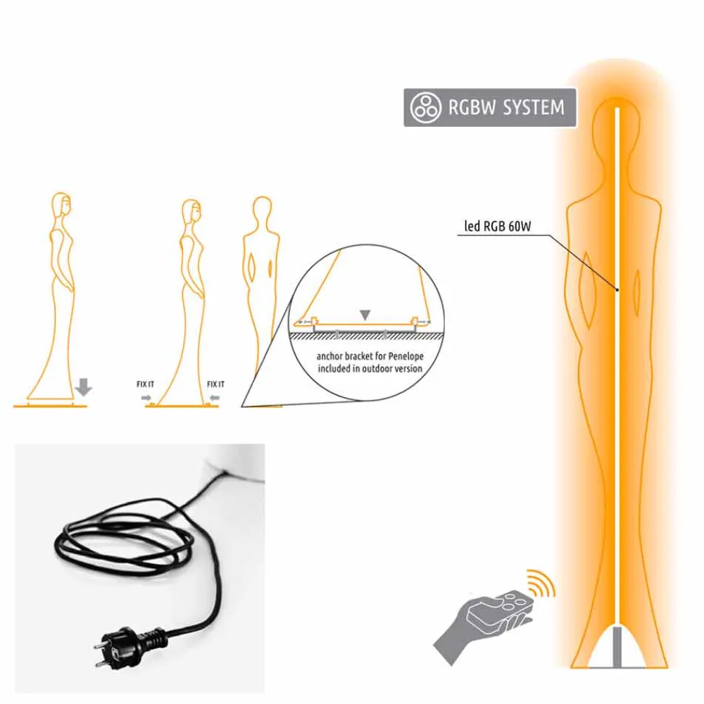 Es ist von der klassischen Welt inspiriert, bietet aber ausgesprochen innovatives Design, Technologien und funktionale Merkmale. Die neue Penelope- Lampe von Myyour überrascht: für ihre Größe (sie ist 2,10 m hoch); für das Design (stark anthropomorph, reproduziert und stilisiert es eine schlanke Figur einer Frau); für die funktionellen Eigenschaften (gleichmäßig über die gesamte Oberfläche beleuchtet, stellt es einen zweifellos wichtigen Lichtpunkt dar). Die stilistische Inspiration stammt offensichtlich von klassischen Statuen, Ornamenten von Villen und Gärten der Antike, aber sie wird durch eine Neuinterpretation verwirklicht, die ein scharfes Auge auf moderne und abgelegenere Kunst wirft (Sie können Echos jakobinischer und etruskischer Kunst sehen).