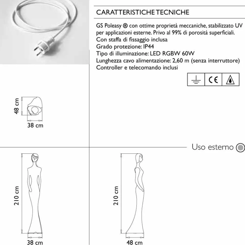Garten Stehlampe mit RGBW LED Licht, modernes Design made in Italy.