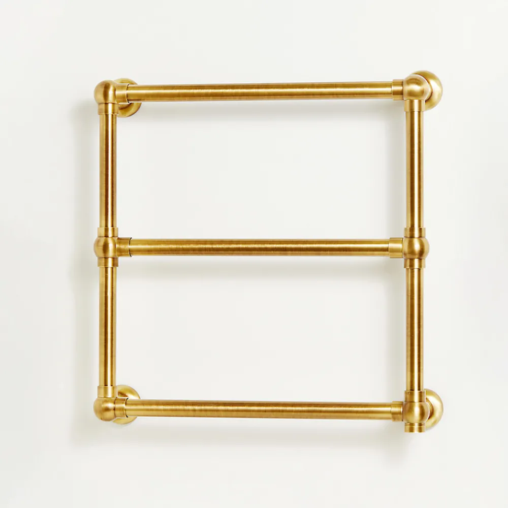 Dieser edle Messingheizkörper verkörpert Klasse und Eleganz und ist ideal, um ein luxuriös ausgestattetes Badezimmer mit einem Hauch von Wärme zu vervollständigen, ohne Kompromisse beim Stil einzugehen. Mit seinem kompakten Design und den horizontalen Stangen optimiert dieser Heizkörper nicht nur den Platz, sondern bietet auch die Funktion eines Handtuchhalters , sodass Ihre Handtücher warm und einsatzbereit bleiben.