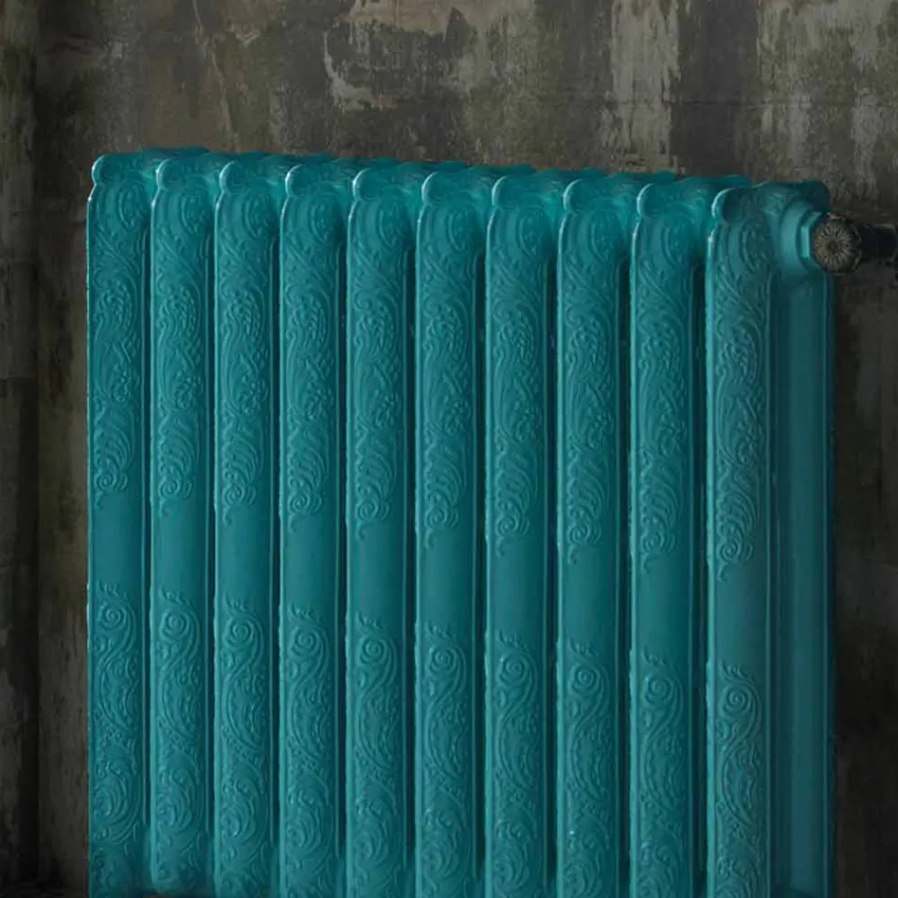 Der Heizkörper mit einem stolzen Retro-Geschmack, der zum Protagonisten seines Raums wird und dem Wunsch entspricht, die Sicherheit raffinierter Eleganz im Klassischen zu finden. Dekorierter und farbiger hydraulischer Heizkörper aus Gusseisen mit zwei Säulen.