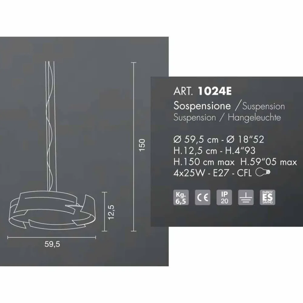 Vultur ist eine Kollektion mit einem dynamischen Design, unterteilt in zweidimensionale Aufhängungen und Deckenleuchten. Die Hauptkonstruktion besteht aus Stahl, während der Diffusor aus PMMA besteht. Finish: Bronze. Vorbereitet für die Verwendung von 4 Glühbirnen 25W – E27 – CFL.