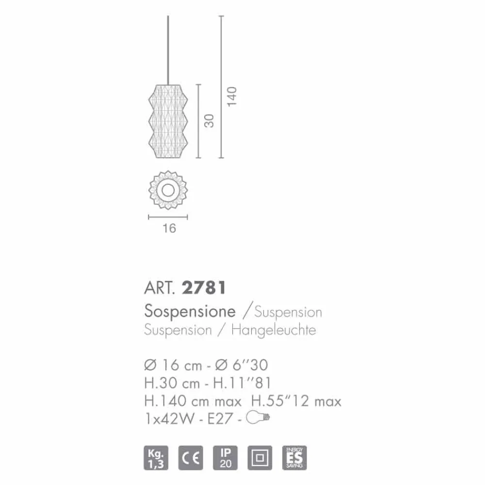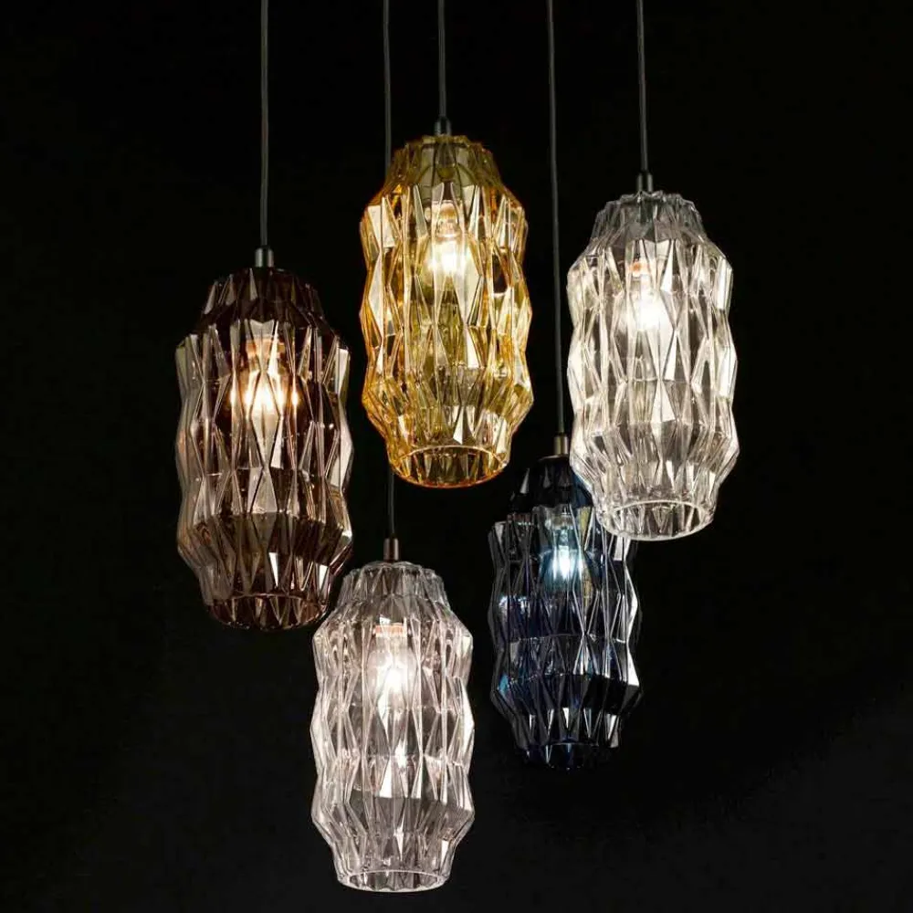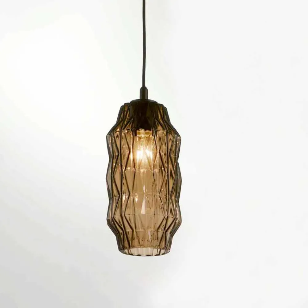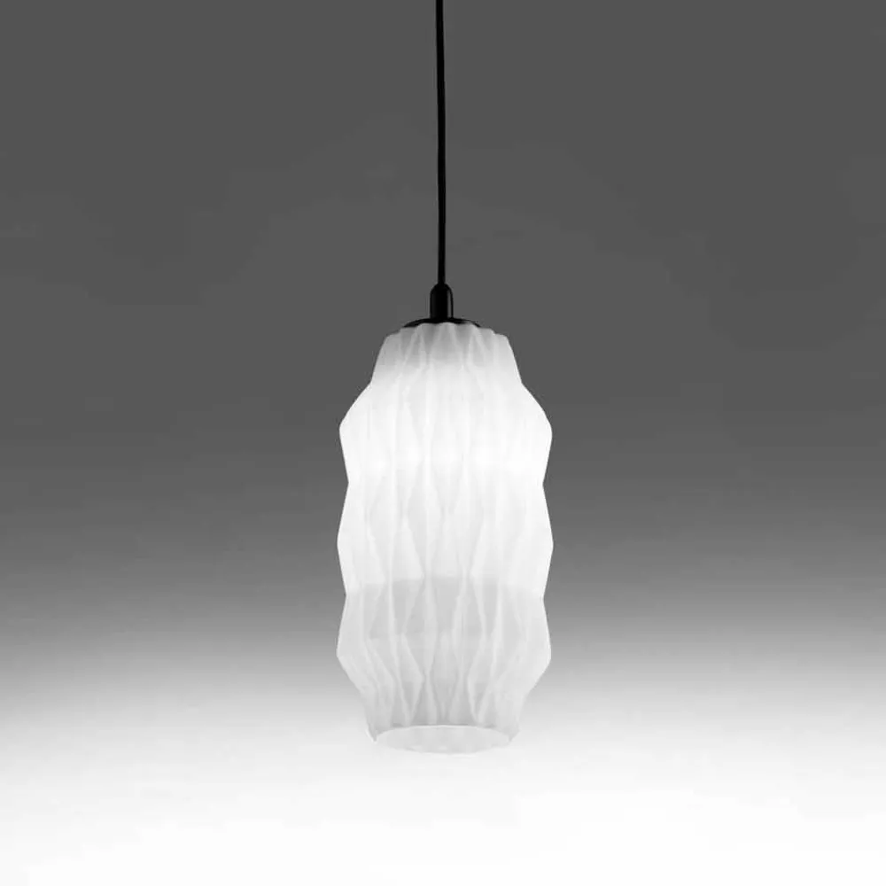 Origami ist in eine Hängeleuchte und eine Tischlampe unterteilt, die beide in verschiedenen Farben erhältlich sind. Eine Kollektion, die aus der Umsetzung des Liberty-Stils und seiner eleganten und stilisierten Linien in einer Form entsteht, um ein mundgeblasenes Glas zu schaffen, das einem Kunstwerk ähnelt. Diese Lampe ist für den Gebrauch einer 42W – E27 Lampe bestimmt.