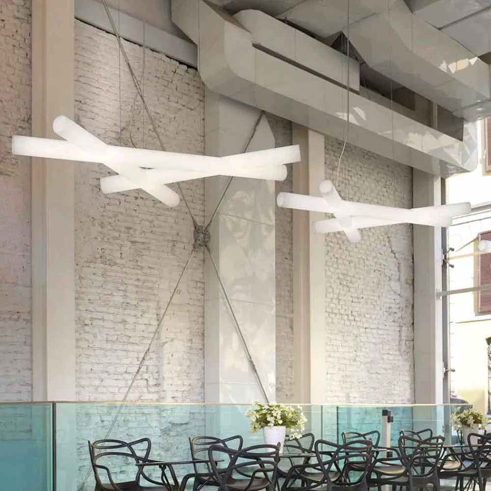 Mesh ist eine Pendelleuchte, die sich eher für die Einrichtung von Innenräumen eignet. Es besteht aus drei gekreuzten Elementen, die es ermöglichen, sie nebeneinander zu platzieren und so je nach persönlichem Geschmack und Raumgröße variable Muster zu schaffen. In Italien hergestelltes Einrichtungszubehör, das Ihren Raum gleichmäßig beleuchtet, ohne auf Originalität und Stil zu verzichten.
