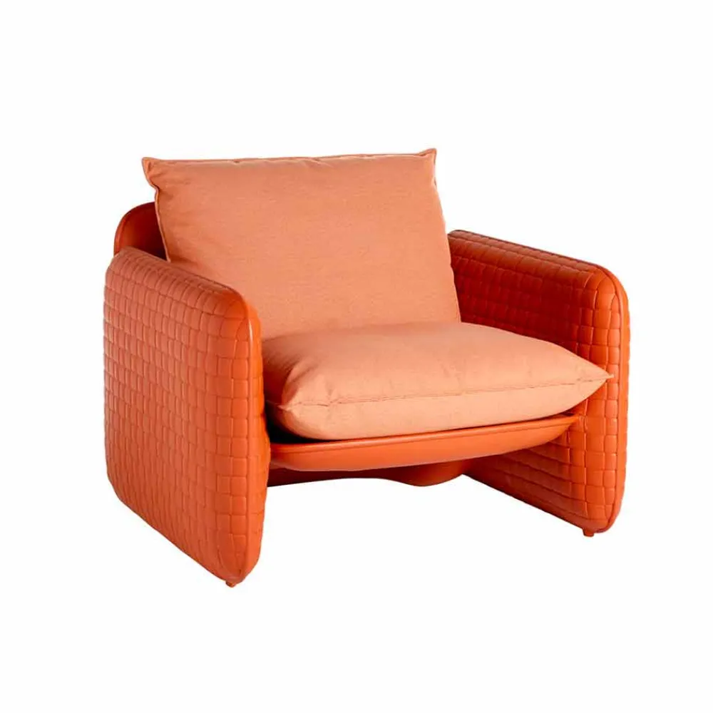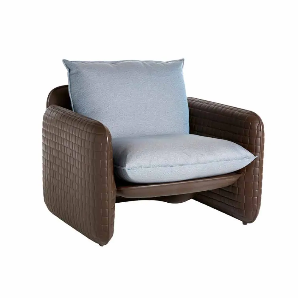 Seine Struktur ist aus Polyethylen , während die Kissen (im Preis inbegriffen) aus Stoff oder Leder sind.