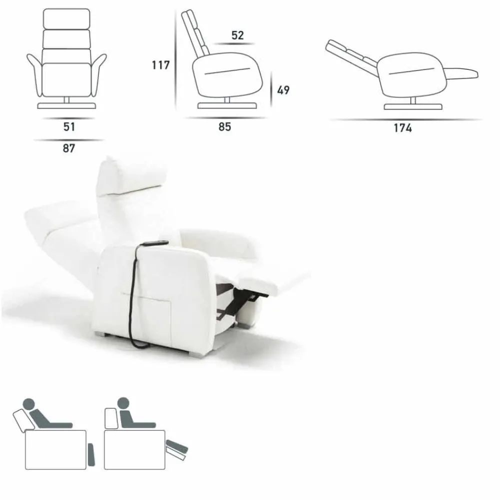 Relaxsessel 2 Motoren Swivel Leder / Stoff / Kunstleder Bluma modern, made in Italy