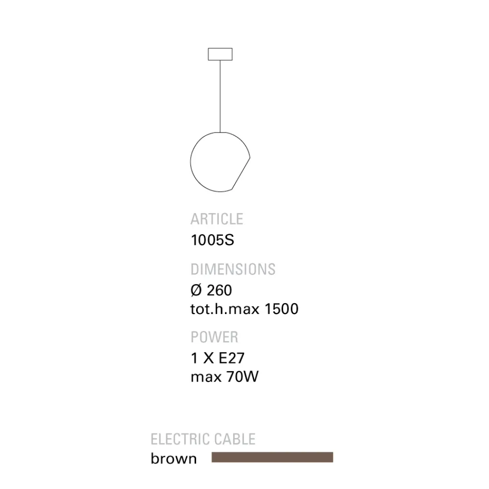 – Für das Ø260-mm-Modell verwendbare Leuchtmittel: 1 x E27 max. 70 W (Leistung), IP 20