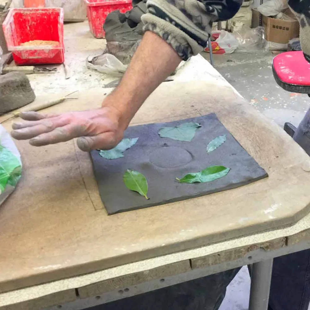 Das Design dieser Dekoration wird aus echten Blättern hergestellt, die von Hand direkt in den Guss gepresst werden.