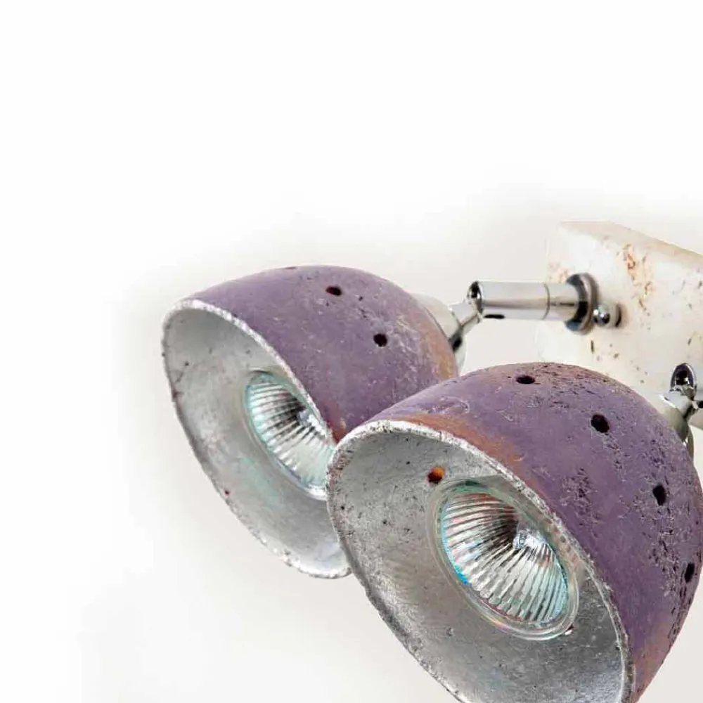Strahler aus der Apuane-Kollektion von Toscot , aus handgetretenem Terrakotta , mit verchromtem Messinggelenk (poliertes oder gebürstetes Nickel auf Anfrage). Geeignet für rustikale Umgebungen mit Balken und Campigiane.