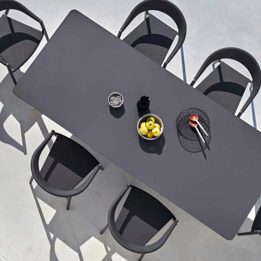 Lick ist ein hochmoderner Esstisch mit einem Mix aus pulverbeschichteten Edelstahlrahmen ( der komplette Rahmen und Tischbeine ) und einer Tischplatte aus HPL oder Teak – Handwerkliche Qualität gepaart mit Schönheit, optischer Mix und Stabilität sind der Trend des kommenden Zeitalters – zeitloses und minimalistisches Desiign, was sich in unterschiedlichen Einrichtungsstilen anpasst und sowohl im Outdoor Bereich als auch im Indoor Bereich genutzt werden kann. Die Tischplatte ist verfügbar in HPL (Dicke 12 mm ) und in Teak Holz ( Dicke 30 mm ).