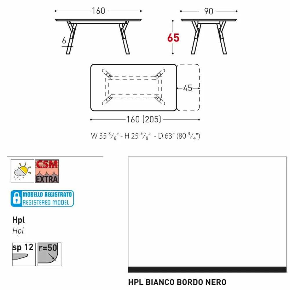 - 90×160/205x H 65 cm – 1 Platte ausziehbar bis 45 cm