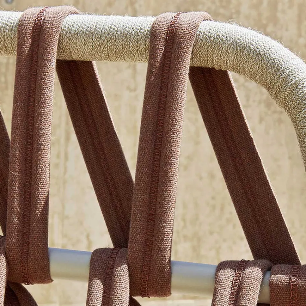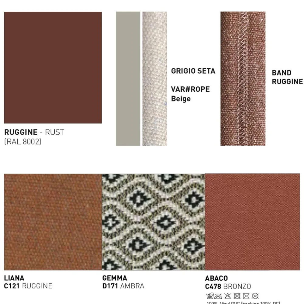 In Italien hergestelltes 3-Sitzer- Gartensofa mit rostfarbener, mit Epoxidpulver beschichteter Aluminiumstruktur , handgeflochtener Rückenlehne mit rostfarbenem Band, Sitzkissen mit Dryfeel-Polsterung und 8 Rückenkissen inbegriffen. Dieses Möbelstück im modernen und originellen Stil wurde entworfen, um das Auge mit seiner eleganten Ästhetik zu erfreuen und gleichzeitig authentischen Komfort zu garantieren.