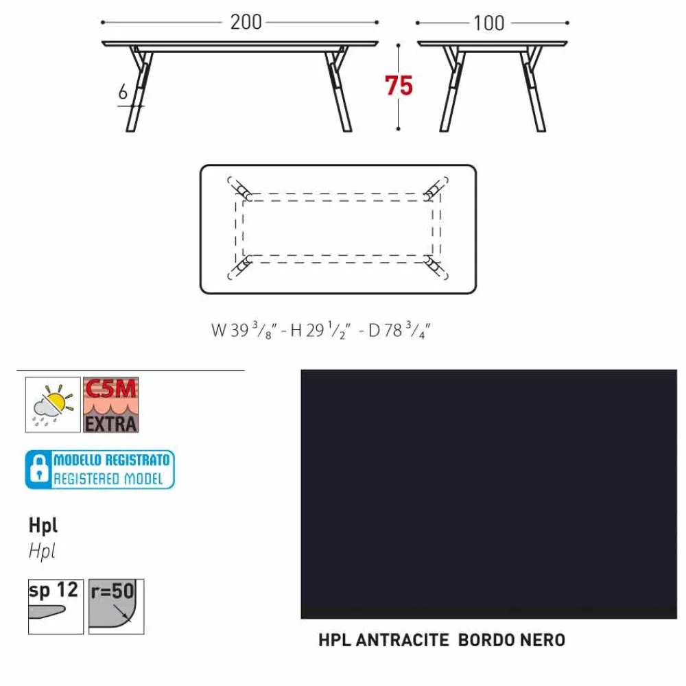 HPL Charaktereigenschaften: HPL heißt High Pressure Laminate. Diese Laminate bestehen aus mehreren Schichten Papier 70% mit einer 30% igen Harz Beschichtung, die unter hohem Druck zusammengefügt wurden. HPL-Platte (auf Basis thermohärtender Harze, homogen verstärkt mit Holzfasern, unter hohem Druck und Temperatur verpresst, der Pressvorgang dauert ca. 40 – 45 min). Das Ergebnis ist eine kompakte feste Tischplatte resistenter als je zuvor, die sowohl im Innenbereich, im Außenberich als auch im Marinebereich anewendet werden kann.