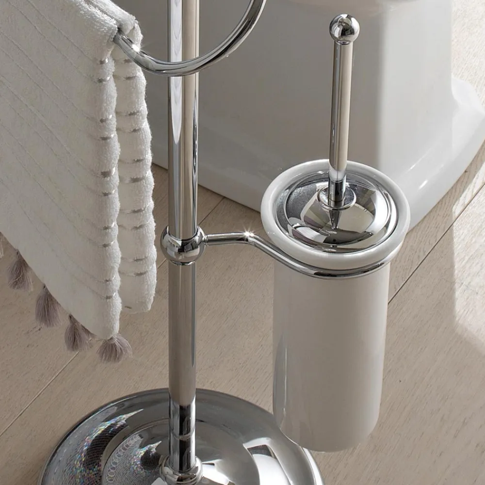 Handgefertigt in Italien mit hochwertigen Materialien. Die Struktur besteht aus Messing, die Seifenschale aus Keramik. Optional ist ein praktischer WC-Bürstenhalter, ebenfalls aus Keramik, erhältlich.