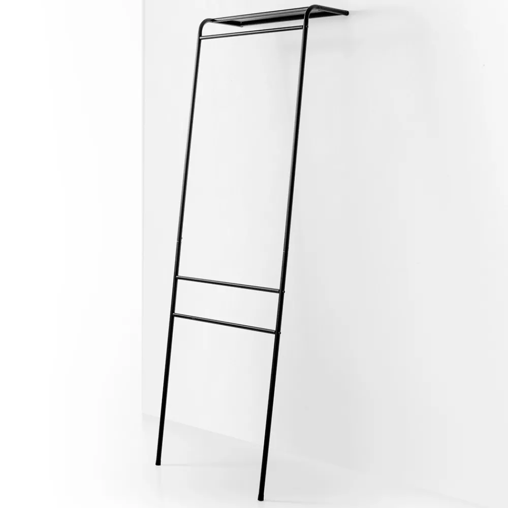 Handtuchhalter mit 3 Stangen und Hutablage aus mattschwarz lackiertem Metall .
