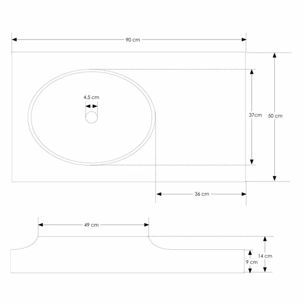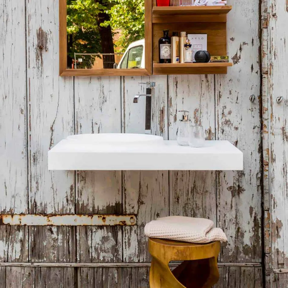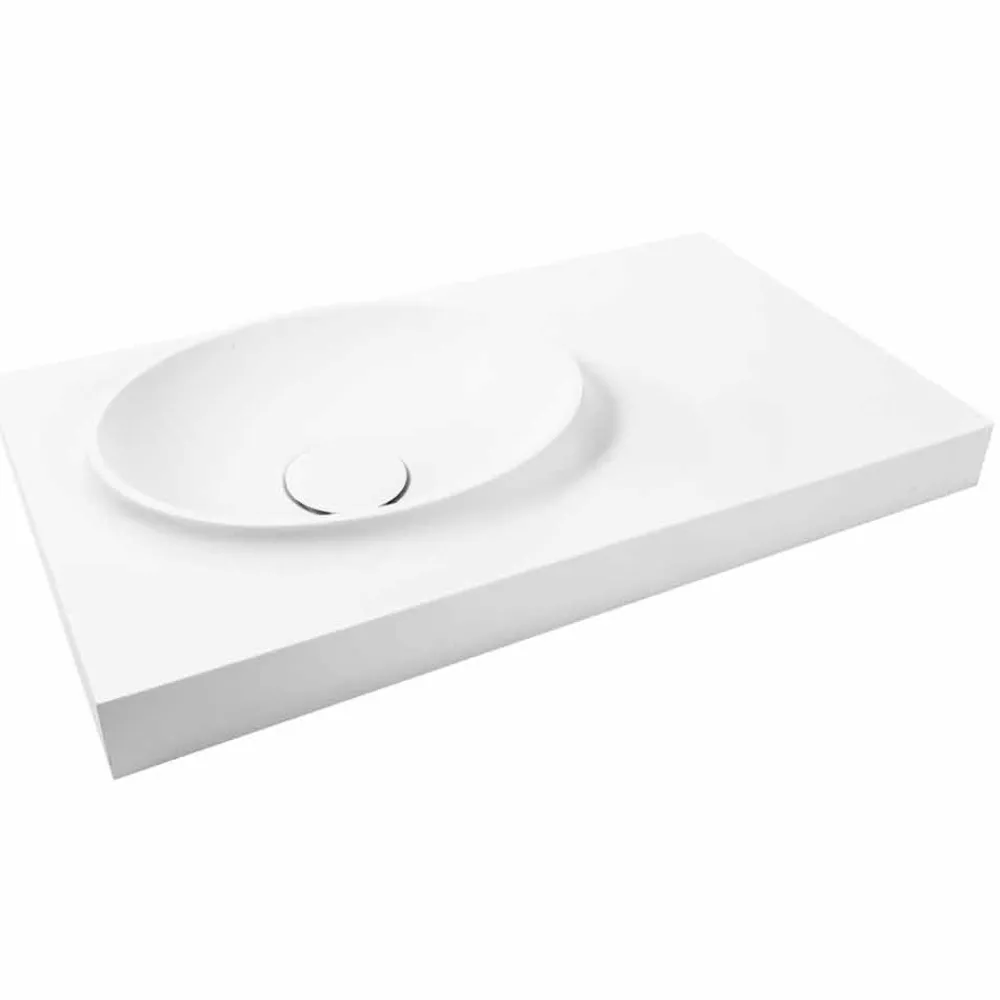 Aus weißem Istone Solid Surface mit integriertem Spülbecken, Überlaufloch und Ablaufdeckel im gleichen Material inklusive.