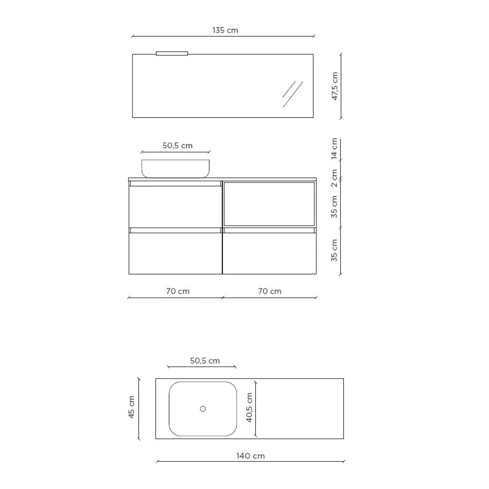 Basis: L 140 cm x T 45 cm x H 72 cm