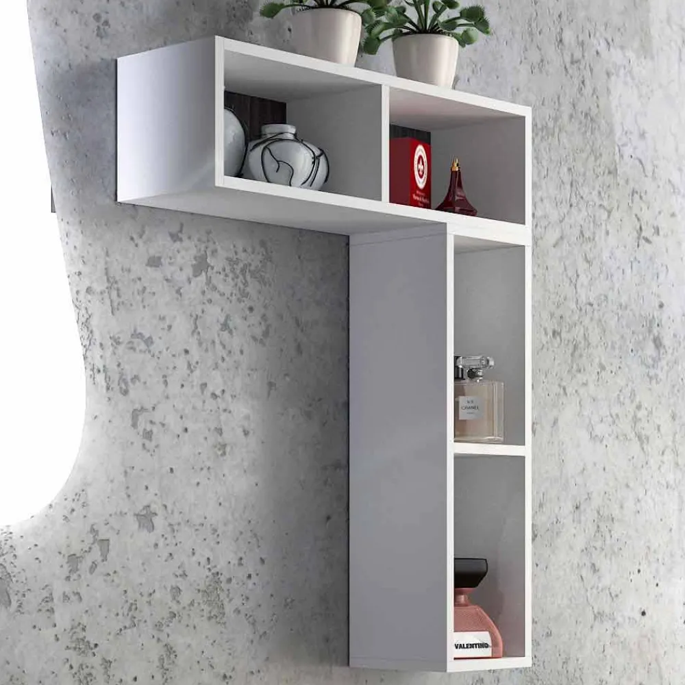 – zwei Ablagen aus Mdf mit mattweißer Lackierung und grauem Lava-Sitz; L60xH15xP18cm.