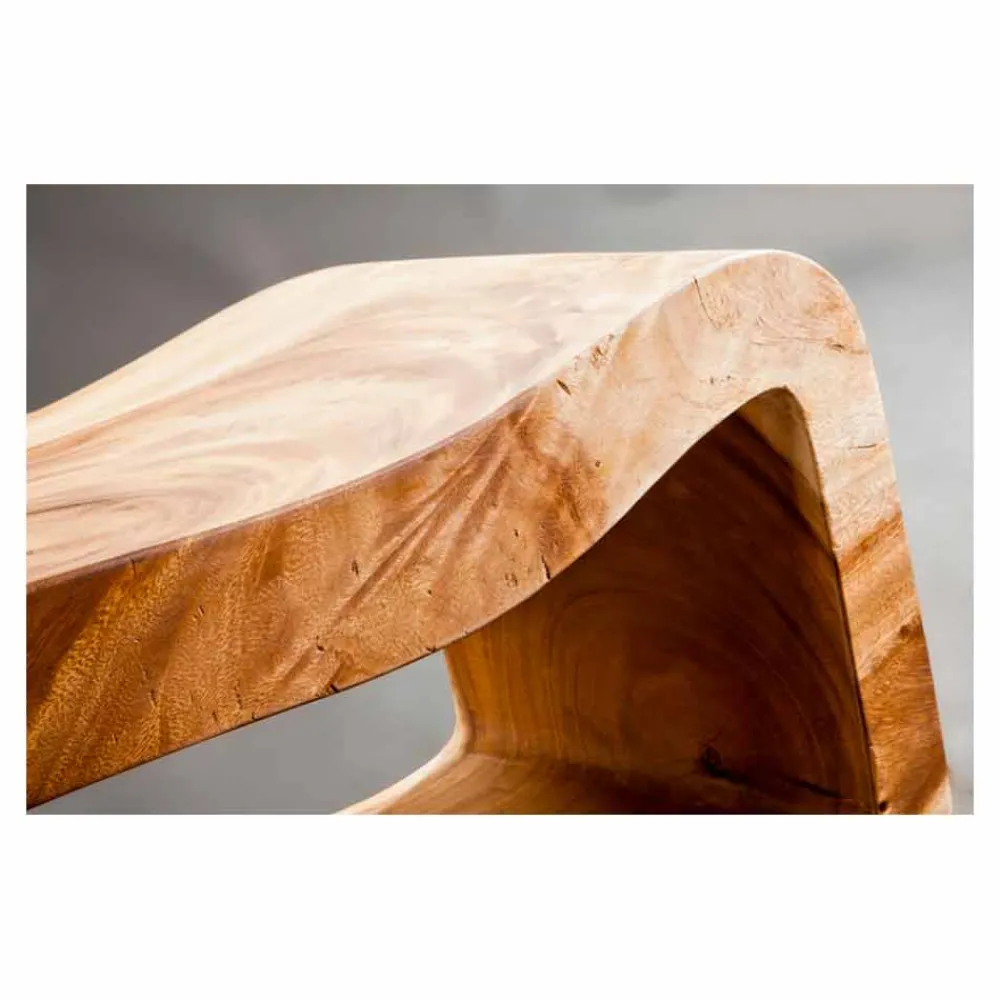Aus dem „Massiv“ der Suar geschnitzt, ist diese Konsole ein einzigartiges und unwiederholbares Stück. Es zeigt die Flammen und Schattierungen des Holzes in ihrer ganzen Ausdehnung.