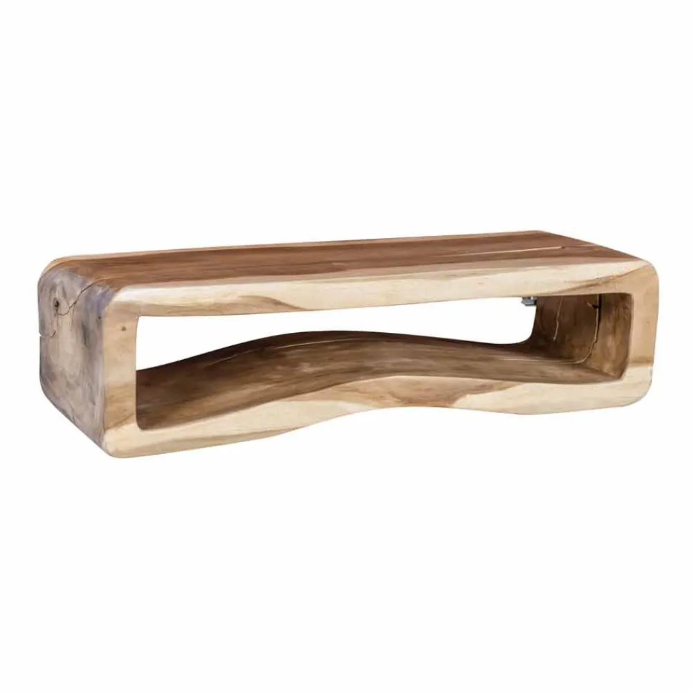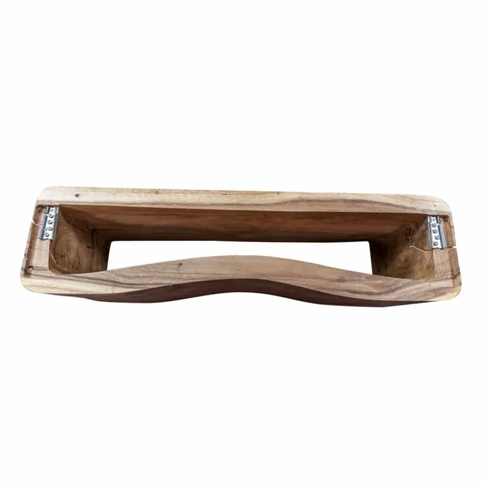 Wandkonsole aus massivem Suar-Holz. Durch eine einfache Bajonettverbindung haftet die Konsole perfekt an der Wand und verleiht ihr Stabilität und Kapazität. Es ist aus massivem Stamm gefertigt. Risse, Knoten oder Unvollkommenheiten können auftreten, ohne die Funktionalität der Konsole in irgendeiner Weise zu beeinträchtigen und sind nicht als Mängel zu betrachten! Jede Konsole ist ein einzigartiges und unwiederholbares Stück.