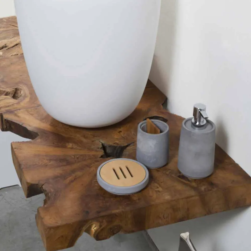 Aufgehängter Badezimmerschrank aus massivem Teakholz.