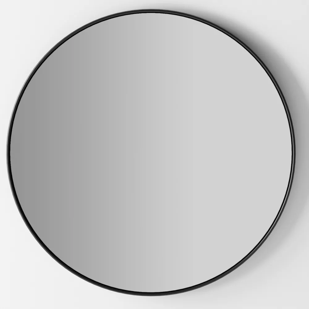 Komplett in Italien hergestellte Badezimmermöbel-Komposition , bestehend aus einem Keramikwaschbecken in mattschwarzer Ausführung , Basis mit Struktur aus mattschwarzem Edelstahl und Platte aus mattschwarzer Keramik mit praktischer Schublade aus Holz in Eichenoptik mit 45 ° -Schnitt und langsamem Schließen. Die Komposition wird durch den runden, hintergrundbeleuchteten Wandspiegel mit Aluminiumrahmen mit mattschwarzer Oberfläche vervollständigt .