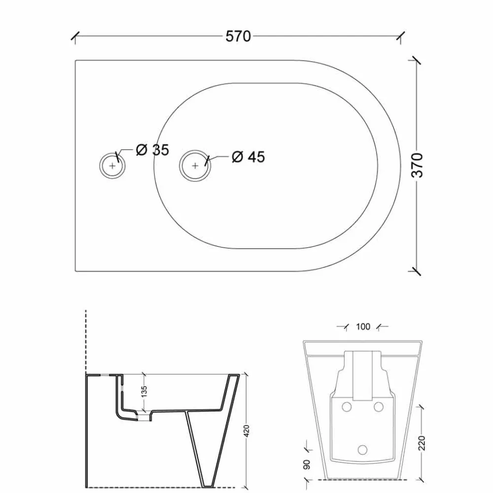 Einloch-Keramik-Bidet für internen Wasseranschluss. Inklusive Befestigungssatz.