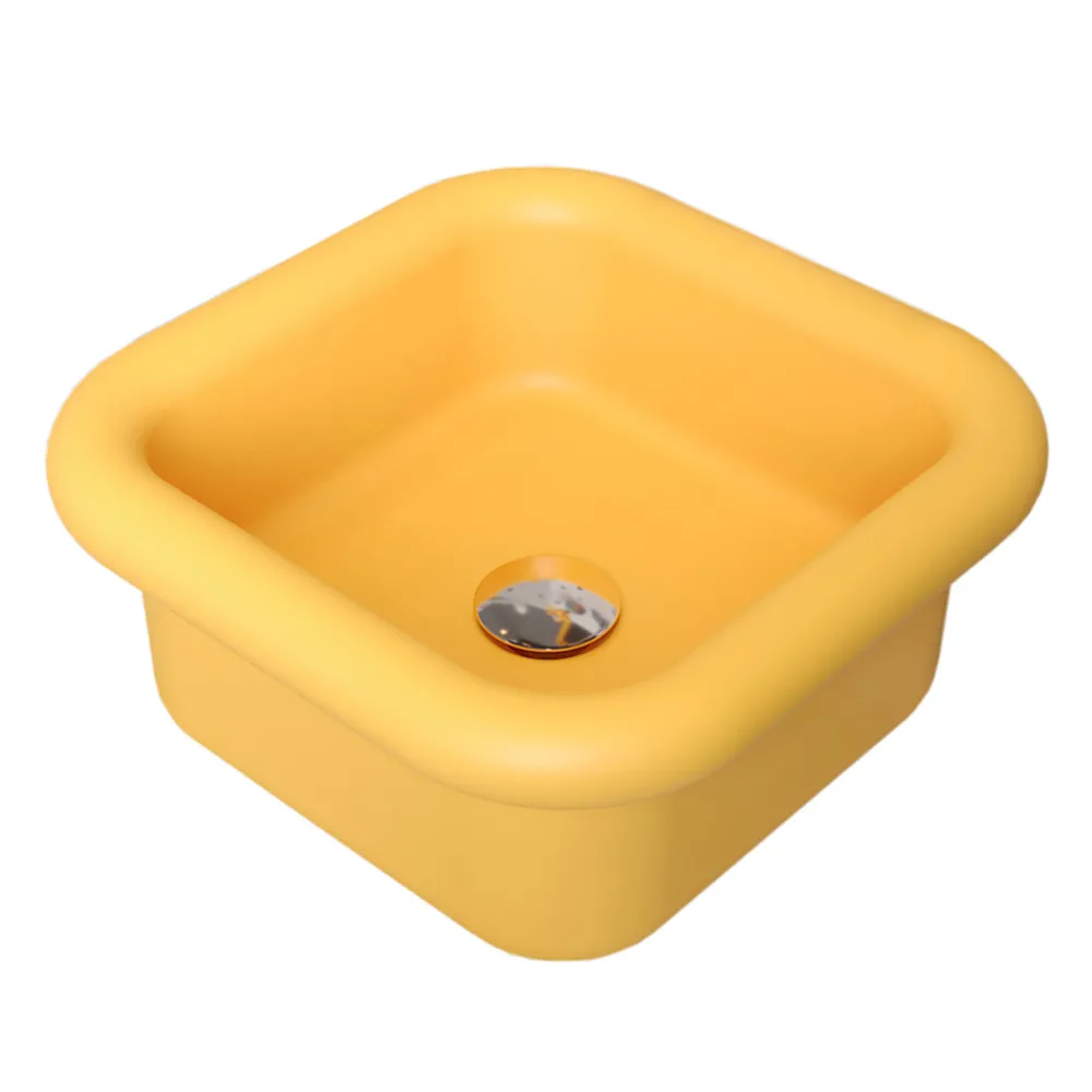 Badezimmerwaschbecken mit rechteckiger Struktur und matt senfgelber Keramikarbeitsplatte .