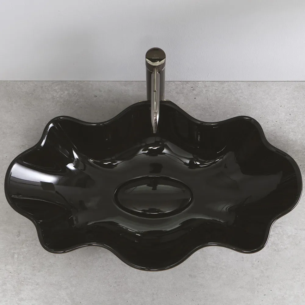 Aufsatzwaschtisch in Form für den Badbereich aus farbiger Keramik mit glänzendem Finish , in Italien in handwerklicher Produktion hergestellt . Ein originelles und faszinierendes Design , das aus dem Wunsch entspringt, Einrichtungslösungen abseits der klassischen Serienprodukte anzubieten. Das Ergebnis ist ein Waschtisch mit exklusiver Ästhetik, der durch seine imposante moderne Persönlichkeit und die besondere, an eine Muschel erinnernde Form auf sich aufmerksam macht.