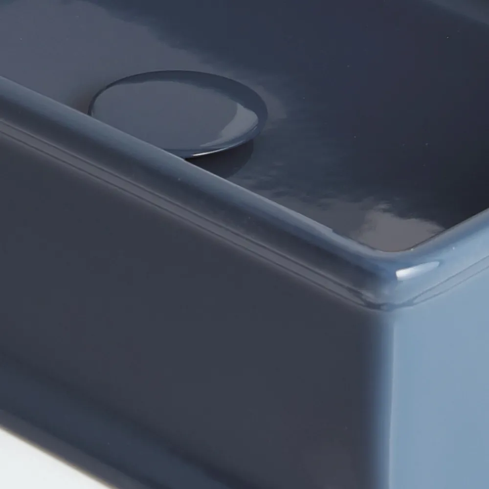 Rechteckiges Aufsatzwaschbecken aus farbiger Keramik mit glänzender Oberfläche, hergestellt durch 100% Made in Italy Handwerkskunst . Eine Ästhetik, die von kühnen und beeindruckenden Linien und Strichen unterbrochen wird, charakterisiert dieses Möbelstück mit einer Retro-Seele , die dank der Verwendung von Farbe in einem zeitgenössischen Stil neu interpretiert wird, um ein exklusives und raffiniertes Ergebnis zu erzielen .