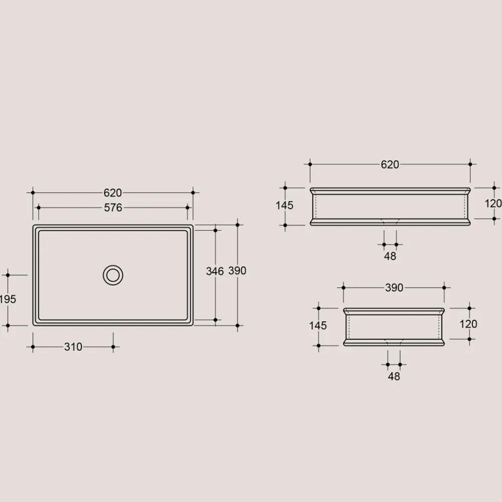 Rechteckiges Aufsatzwaschbecken aus handgefertigter Keramik Made in Italy.
