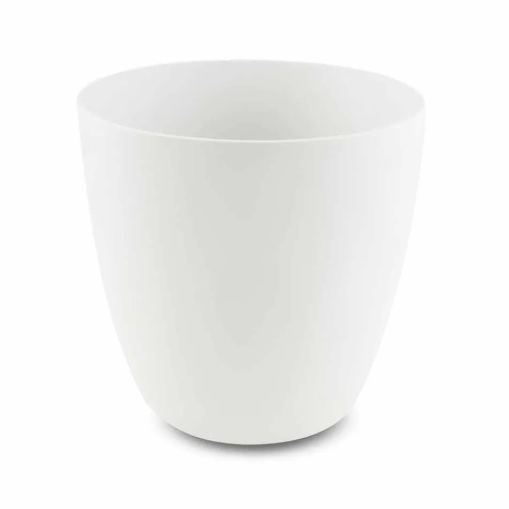 Aufsatzwaschbecken aus weißem Harz in Form eines Eimers.