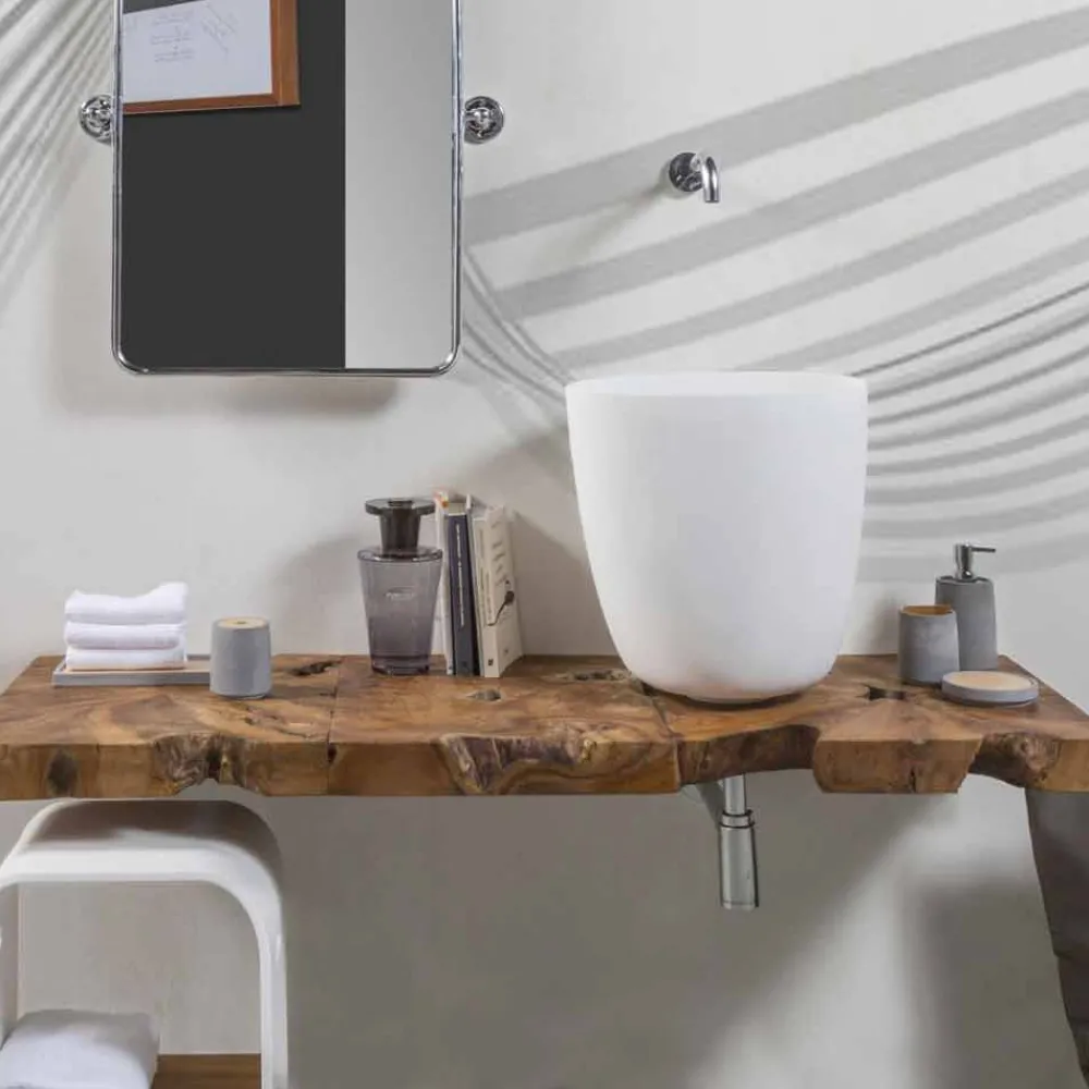 Tipps zur Pflege des Harzes : Mit nicht aggressiven Reinigungsmitteln reinigen, keine Bleich- oder Pulverprodukte verwenden. keine scheuernden Schwämme verwenden und sorgfältig ausspülen. Die Farbänderung, die das Harz im Laufe der Zeit erfährt, ist als natürlich anzusehen und liegt in den technischen Eigenschaften des Materials. Das Aussetzen von Harzprodukten nach außen wird nicht empfohlen.