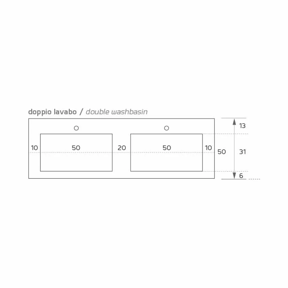 Rufina ist ein integriertes System, das aus einer Materialplatte besteht, in der die beiden Waschbecken untergebracht sind. Seine Besonderheit ist, dass es auf jeder Art von Basis installiert werden kann oder in der suspendierten Version belassen werden kann.