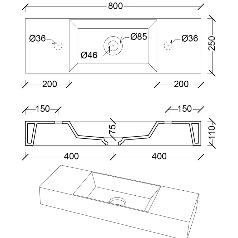 NB : Dieser Artikel kann sowohl als Stütze als auch als Aufhängung verwendet werden. Vorbereitet für rechte, linke oder Wandarmaturen (bei Bestellung angeben).