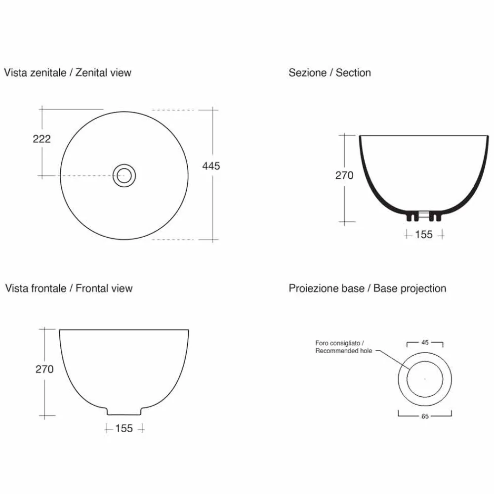 Moderne Arbeitsplatte Schüssel Waschbecken in Italien in farbiger Keramik handgefertigt.