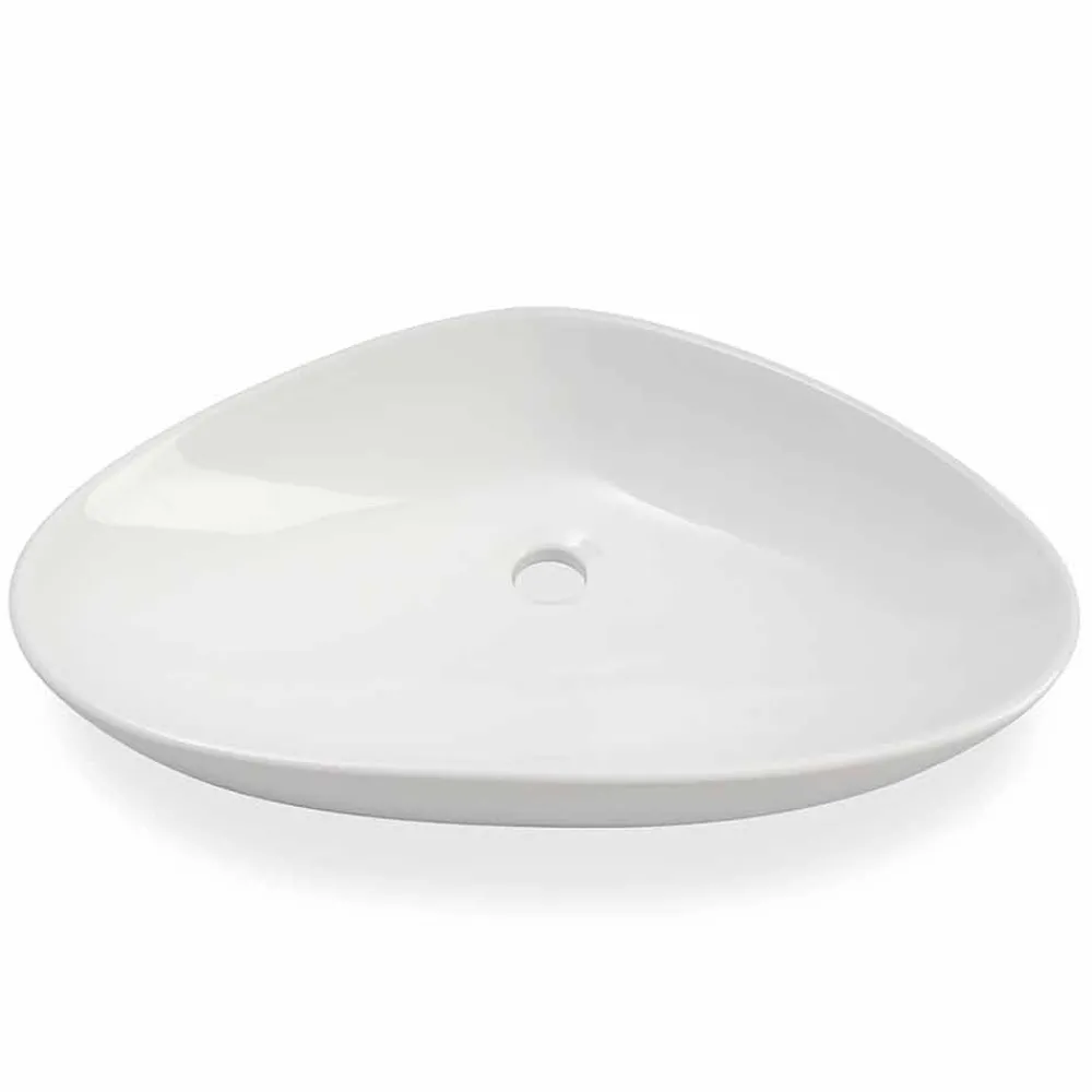 Aufsatzwaschbecken im modernen Stil, handgefertigt in Italien aus glänzender weißer Keramik.