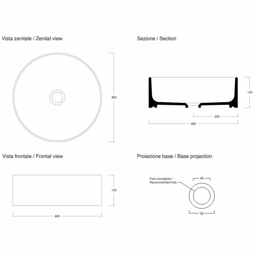Rotolino ist ein rundes Waschtisch ohne Hahnloch.