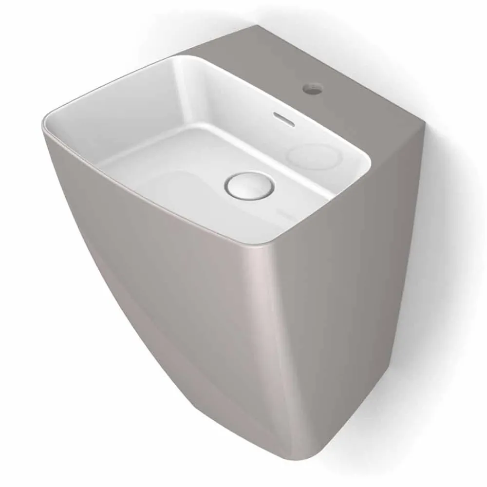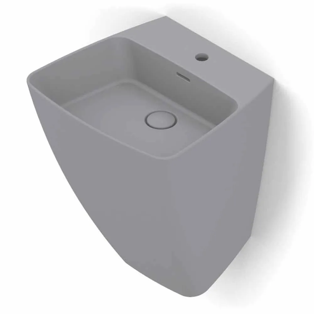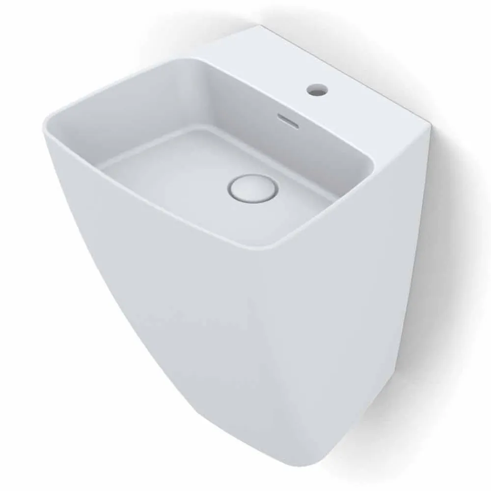 Goran ist eine unglaubliche hängende Wandspüle aus italienischer Keramik mit scharfkantigen Formen und dünnen Kanten. Perfekt, um in jede Art von Badezimmer integriert zu werden.