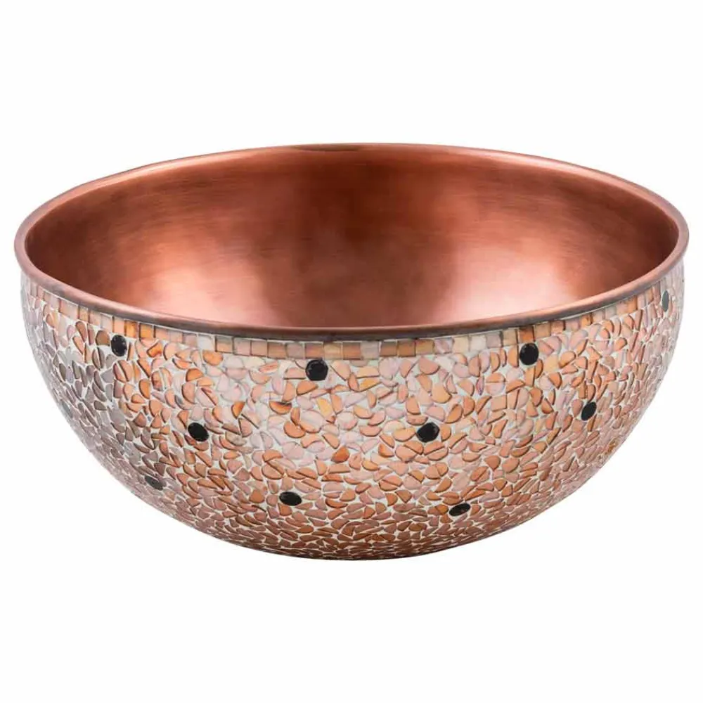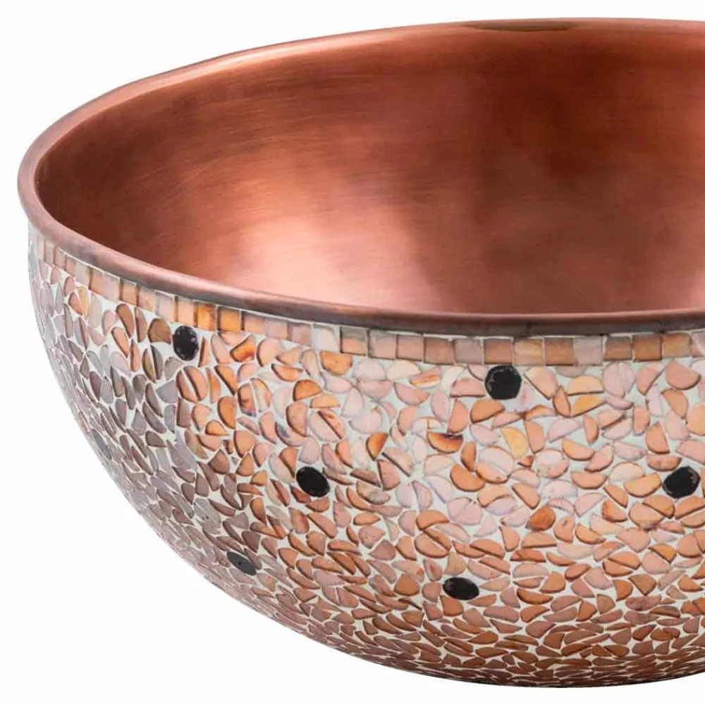 Murello ist ein runder Aufsatzwaschtisch aus Kupfer mit innenliegendem antikem Kupfer und außerhalb der Mosaike.