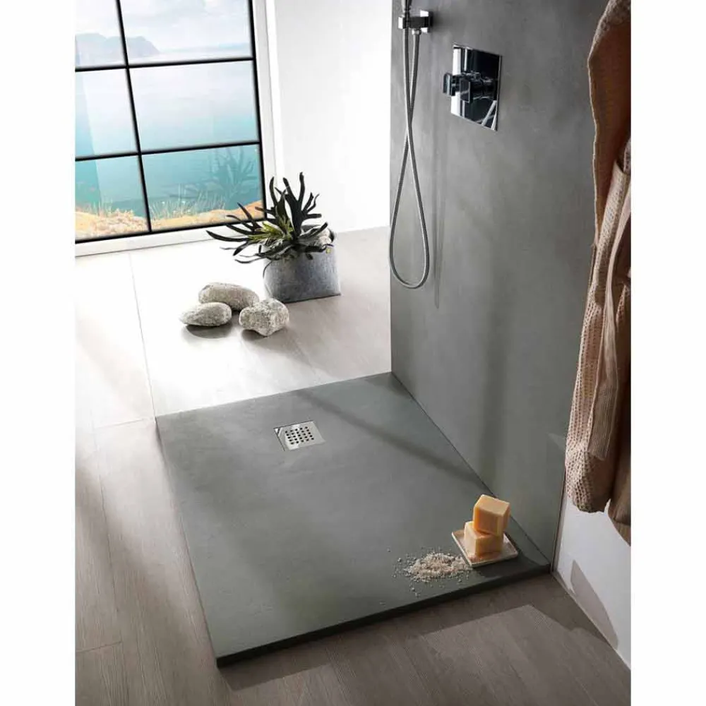 Moderne rechteckige Duschwanne 100×80 in Harzbetoneffekt.