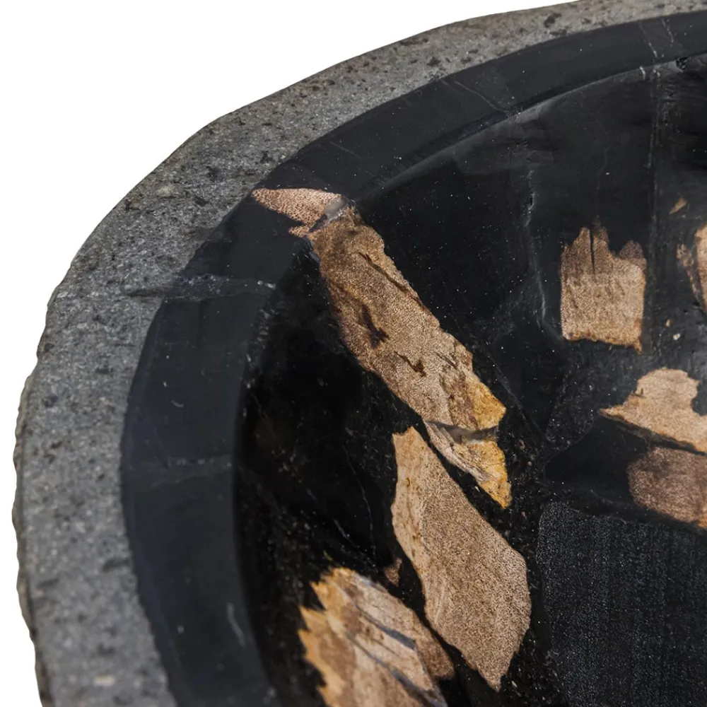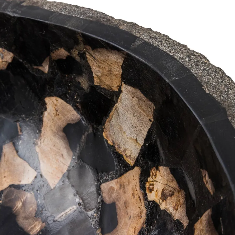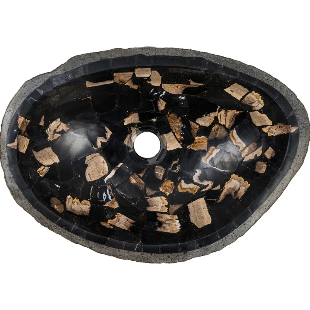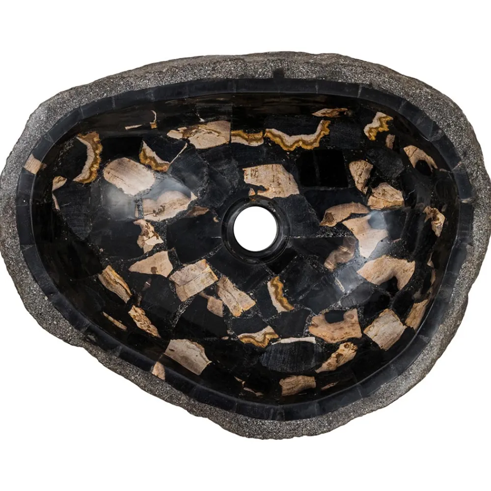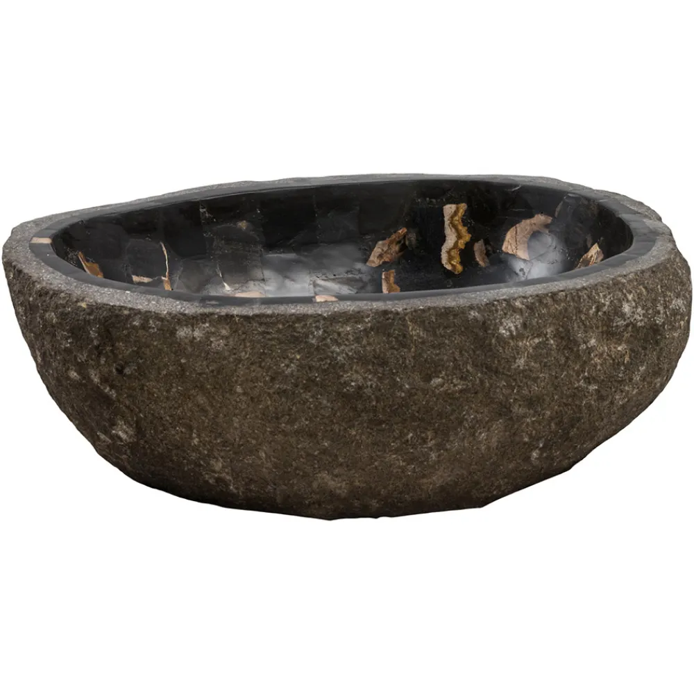 Palizzi ist ein Aufsatzwaschbecken aus Flussstein mit einem Onyxsteinmosaik.