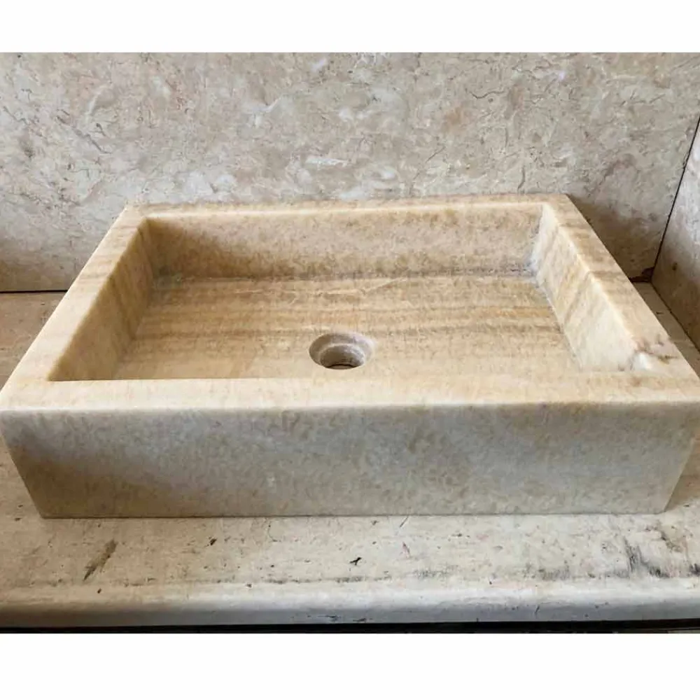 Alle Produkte dieser Kollektion werden aus Materialien wie Marmor, Onyx, Vulkansteinen und Flusssteinen gefertigt.