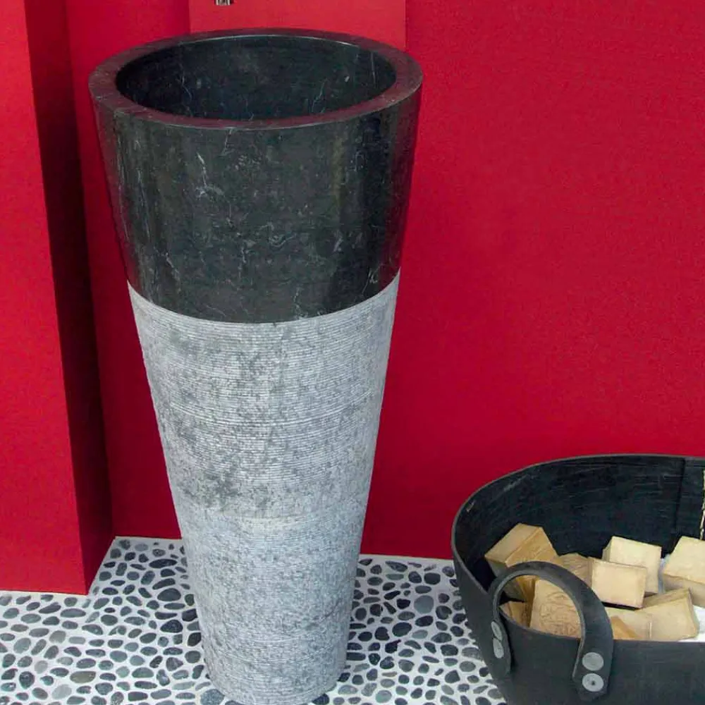Die Form des Sockels windet sich kegelförmig nach oben – der neue Badezimmerstil aus Marmor und Naturstein – Kunst und Phantasie vereinen sich mit den Gesetzen der Natur, direkt in Ihrem Bad. Standwaschbecken gewinnen immer mehr an Bedeutung, da Sie mehr Raum für Gestaltungsmöglichkeiten geben, zeitgenössische Kunst versteht sich sowohl mit Retro Look als auch mit Moderne. Die Oberflächenstruktur von Natursteinen verleiht Ihrem Bad ein natürliches Design mit lebenslangen Nutzen – kratz und säurebeständig wird Ihnen das Händewaschen viel Freude bereiten.