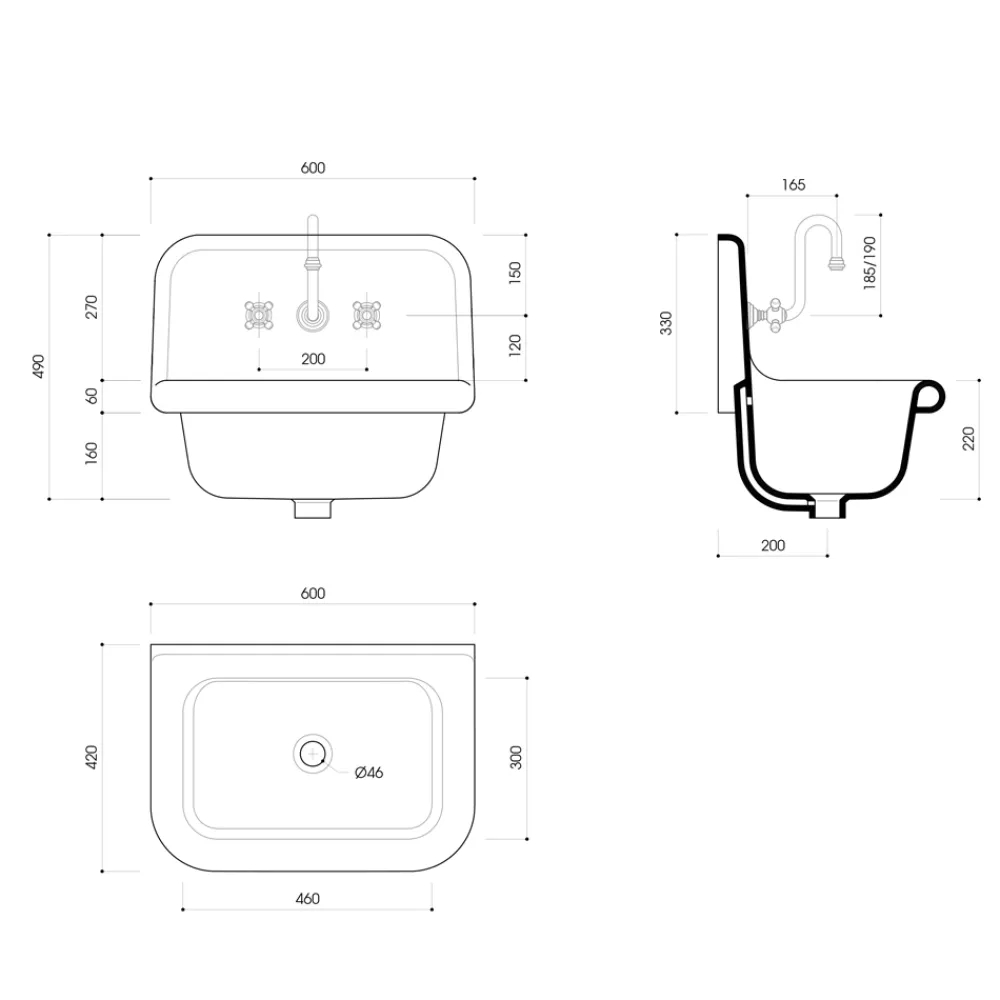 Bitte beachten Sie: Ausgeschlossen sind Wasserhahn, Abfluss und Siphon. Das Waschbecken wird mit 3 Hahnlöchern geliefert.