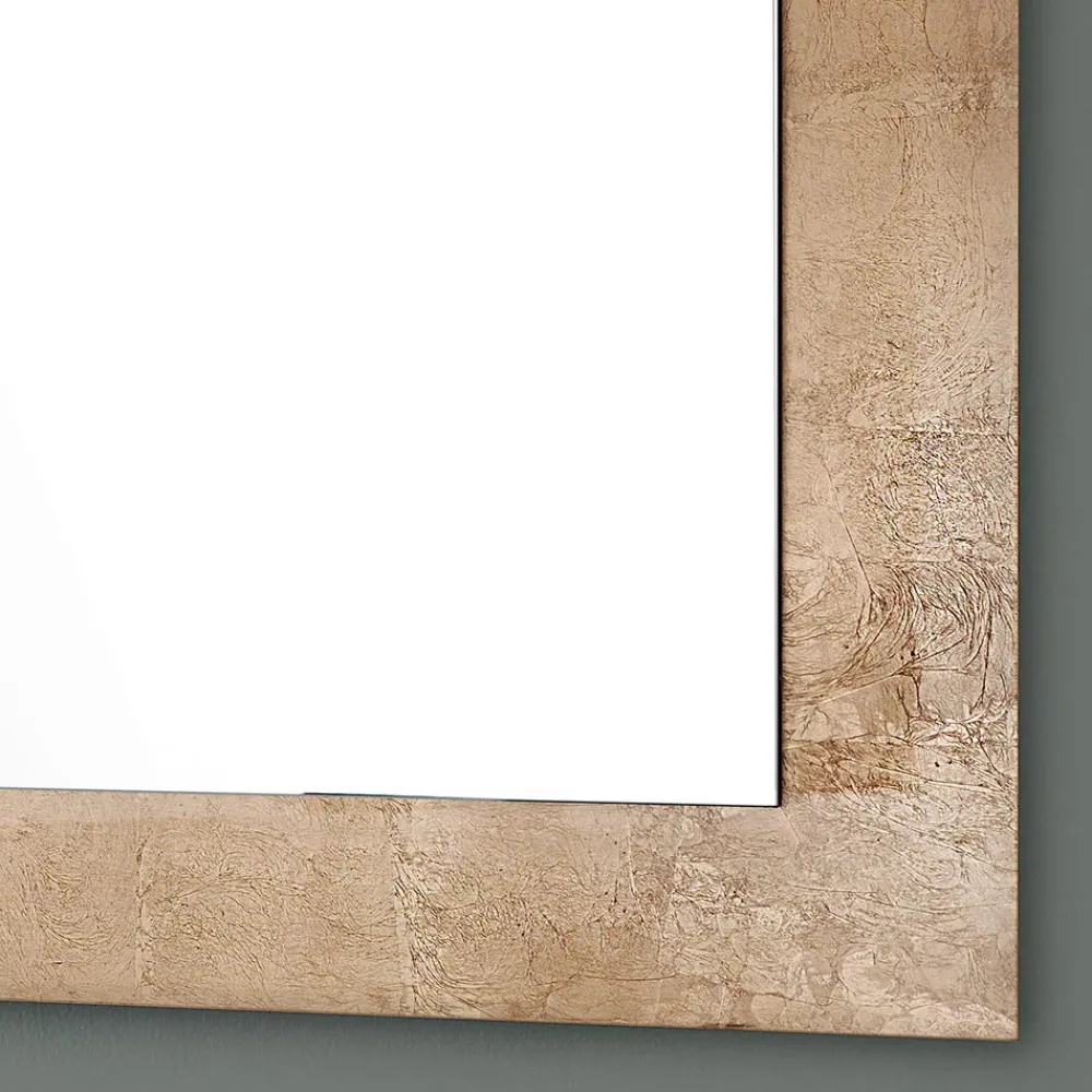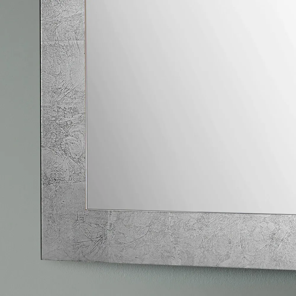 Dieser rechteckige Wandspiegel zeichnet sich durch sein feines Design mit einem blattdekorierten Glasrahmen in drei verschiedenen und eleganten Ausführungen aus.
