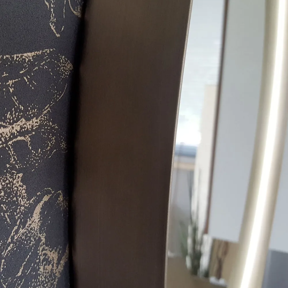 Dieser runde Wandspiegel besticht durch sein edles Design mit einem Metallrahmen in vier Ausführungen mit einer Stärke von 5 cm.