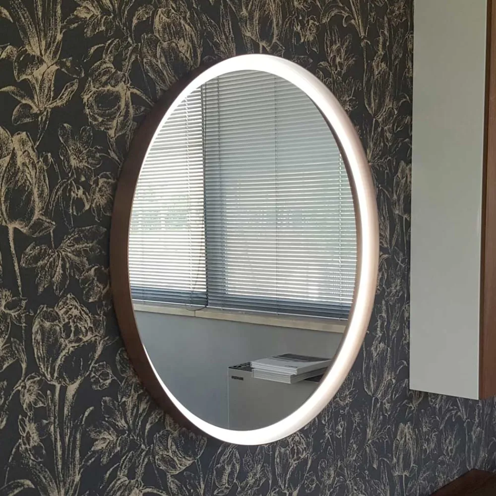 Runder Wandspiegel mit Metallrahmen in 4 Ausführungen und LED-Licht, hergestellt in Italien.