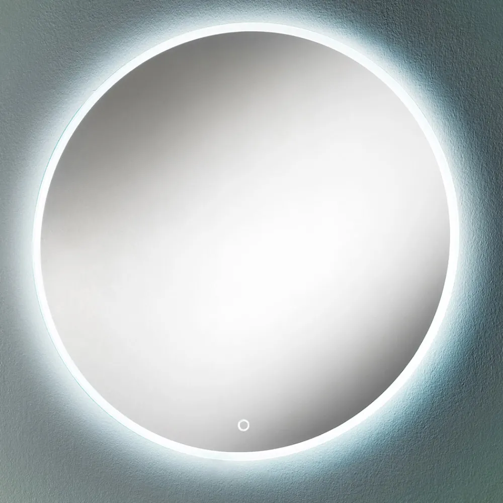 Die Besonderheit dieses runden Wandspiegels besteht in der LED-Hintergrundbeleuchtung mit integriertem Berührungssensorschalter, die das moderne und originelle Design der Ergänzung vervollständigt, die sich durch eine elegante und raffinierte sandgestrahlte Kante auszeichnet. Die integrierte 4000K-LED-Beleuchtung breitet sich von den Rändern aus aus und hat eine Doppelfunktion: als Umgebungsbeleuchtung oder als direkte Beleuchtung des Spülbeckenbereichs.