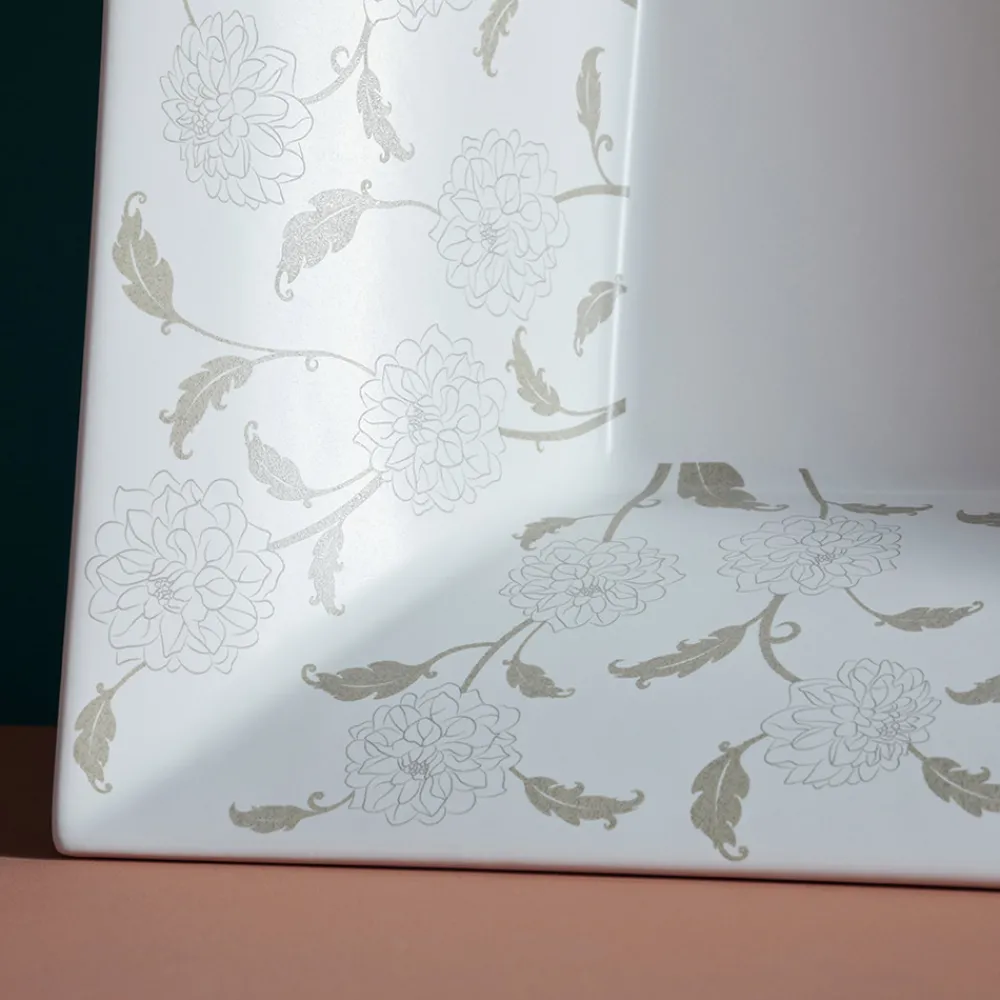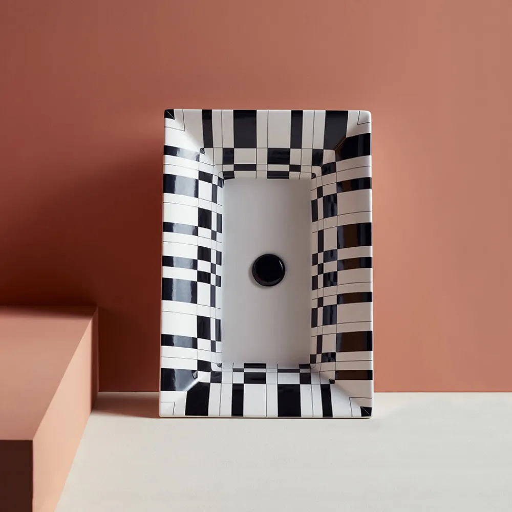 Dank der raffinierten Farbpalette und der Emaillierung, die die leicht erhabenen Dekorationen verschönert, erhält dieses Produkt Eleganz und Einzigartigkeit. Die klassische und strenge Form unterstreicht die Qualität der Oberflächen und macht dieses Waschbecken perfekt für die Dekoration jedes Badezimmers.